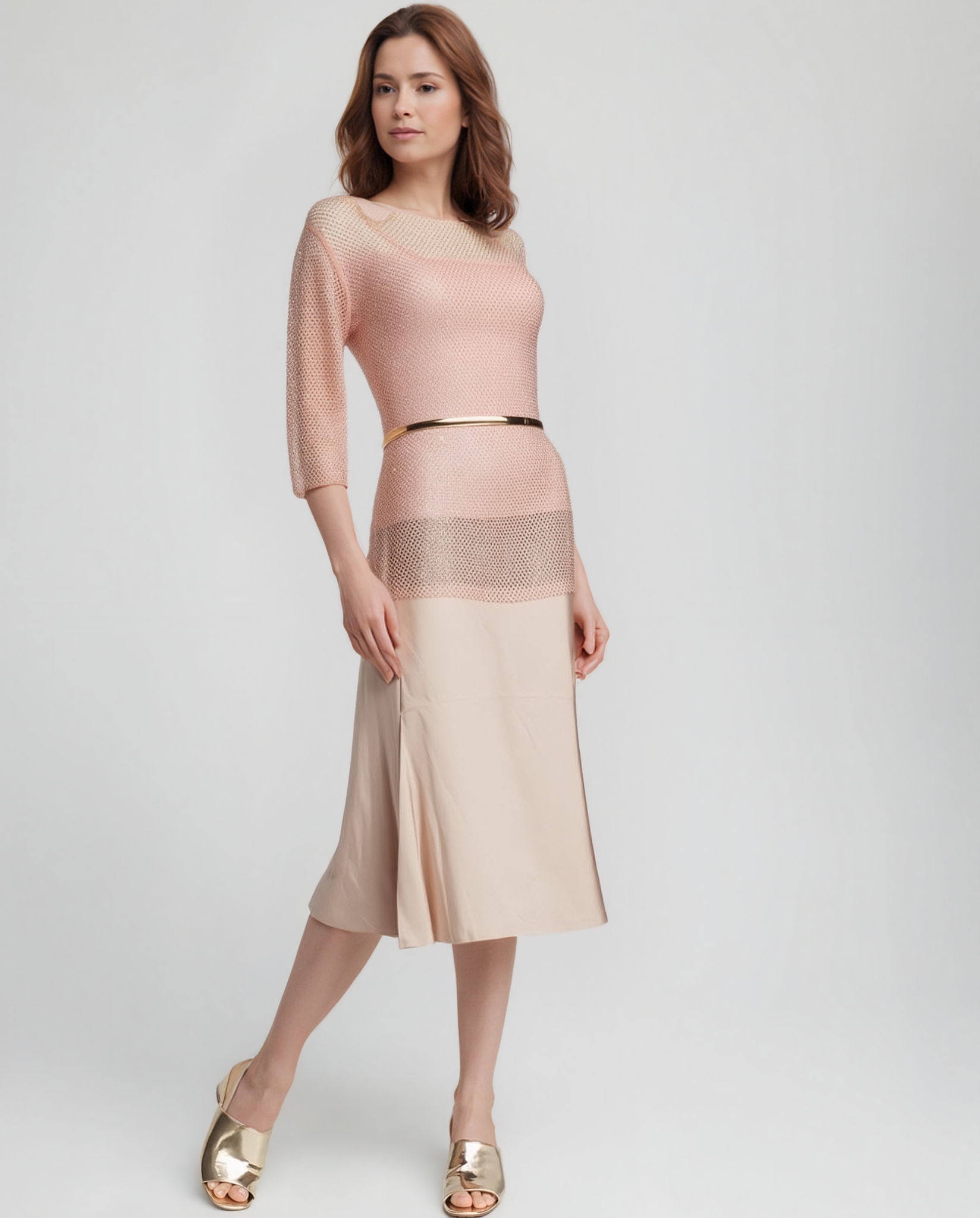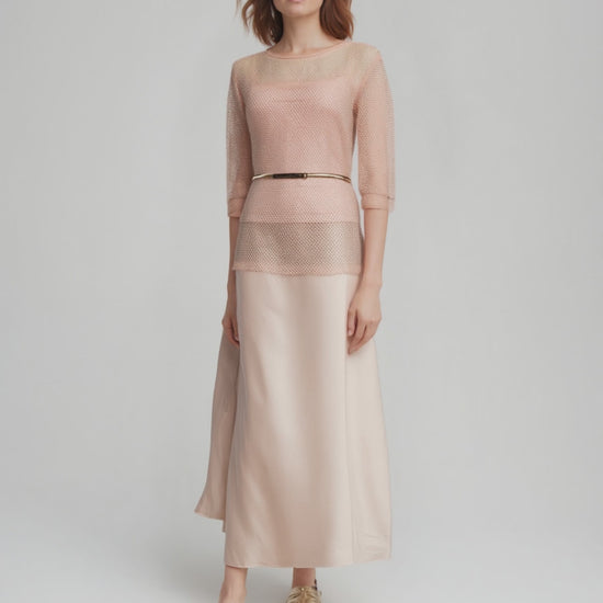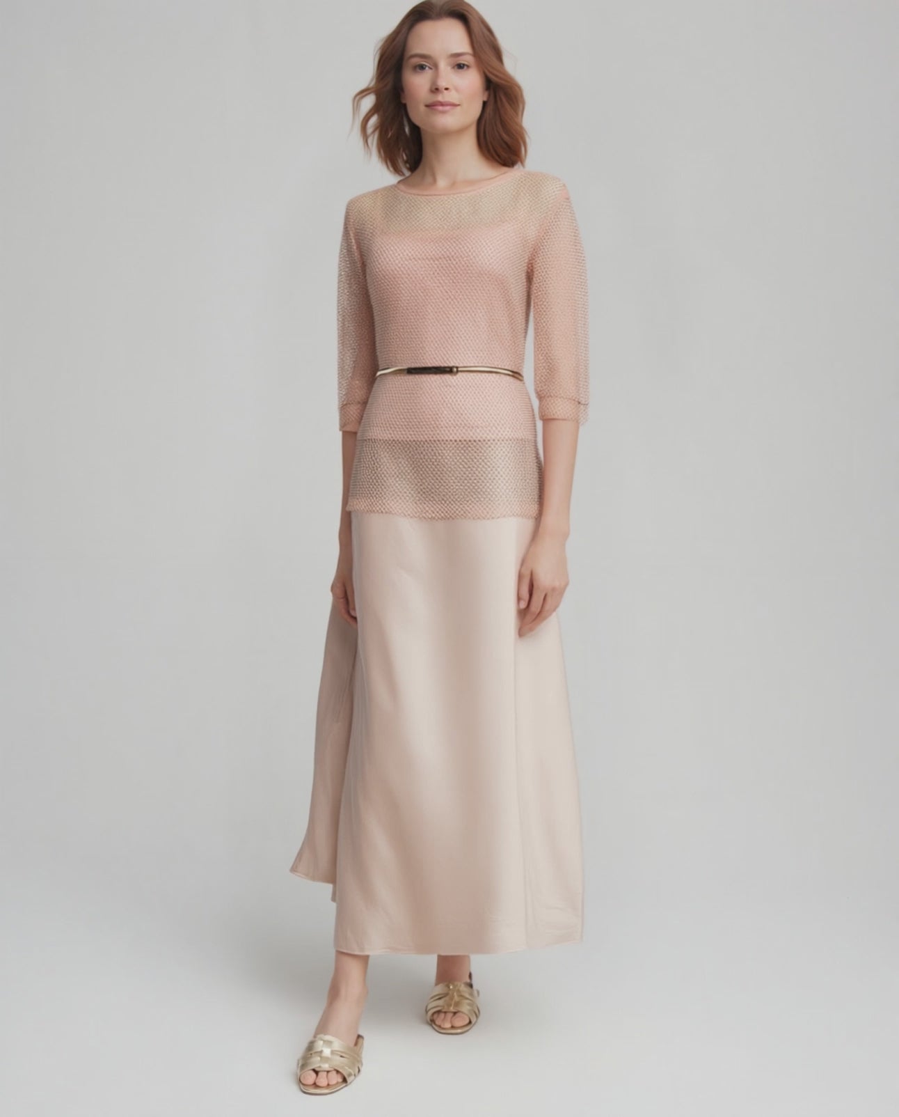 Diamond Mesh 3/4 sleeve top with matching Camisole ( Pink)
