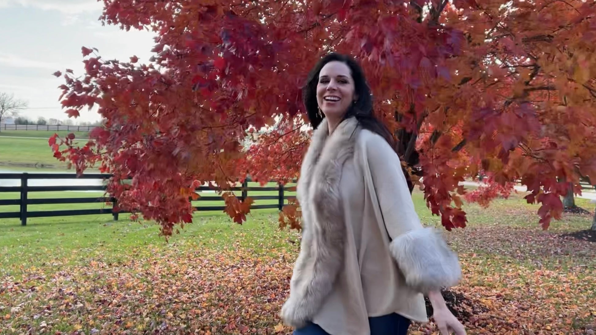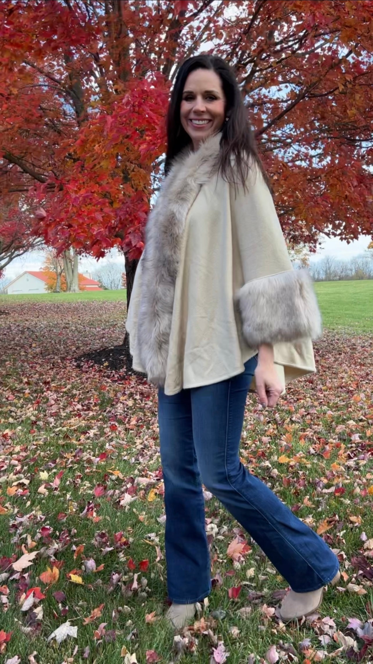 Faux fur kimono Cape with solid color (Oatmeal)