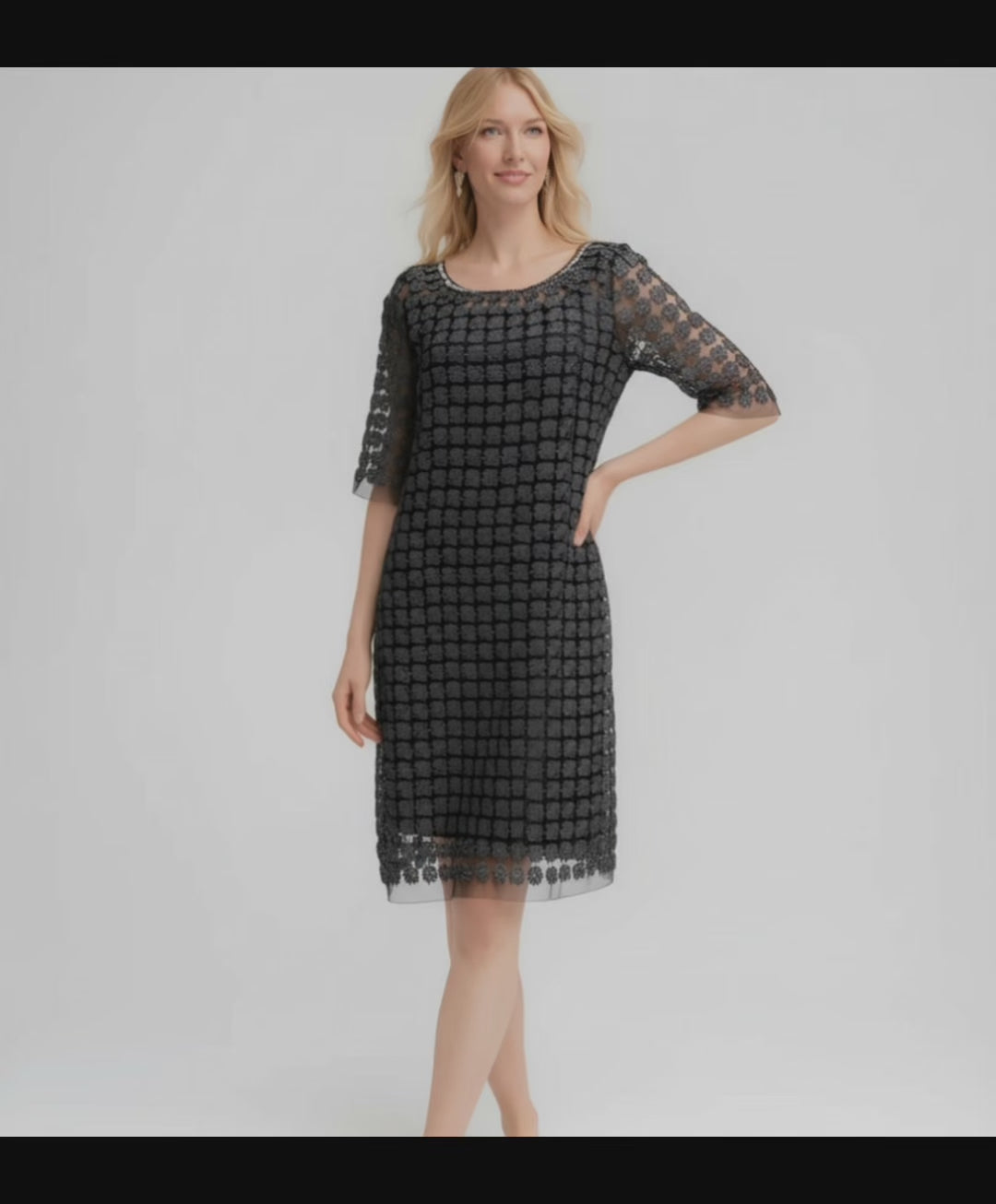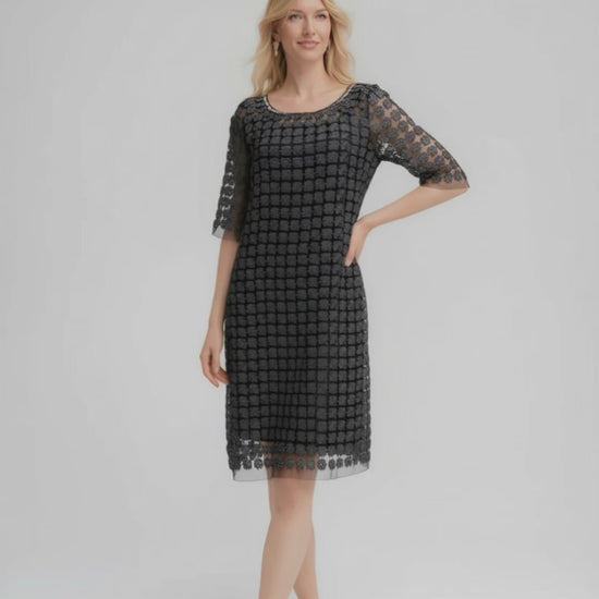 Lace Organza short sleeve Shift Dress with matching cami dress (Black)