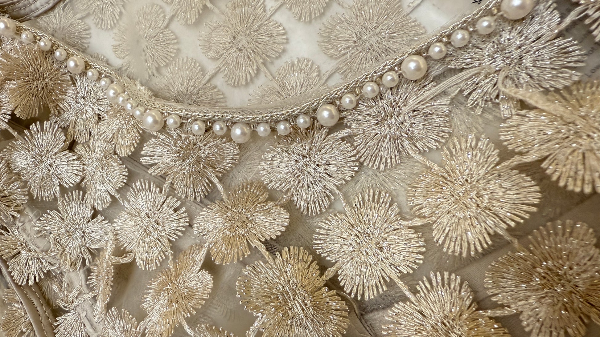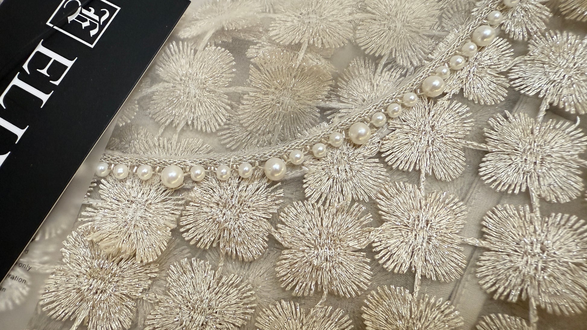 lace Organza Short sleeves dress with matching cami dress (Ivory)