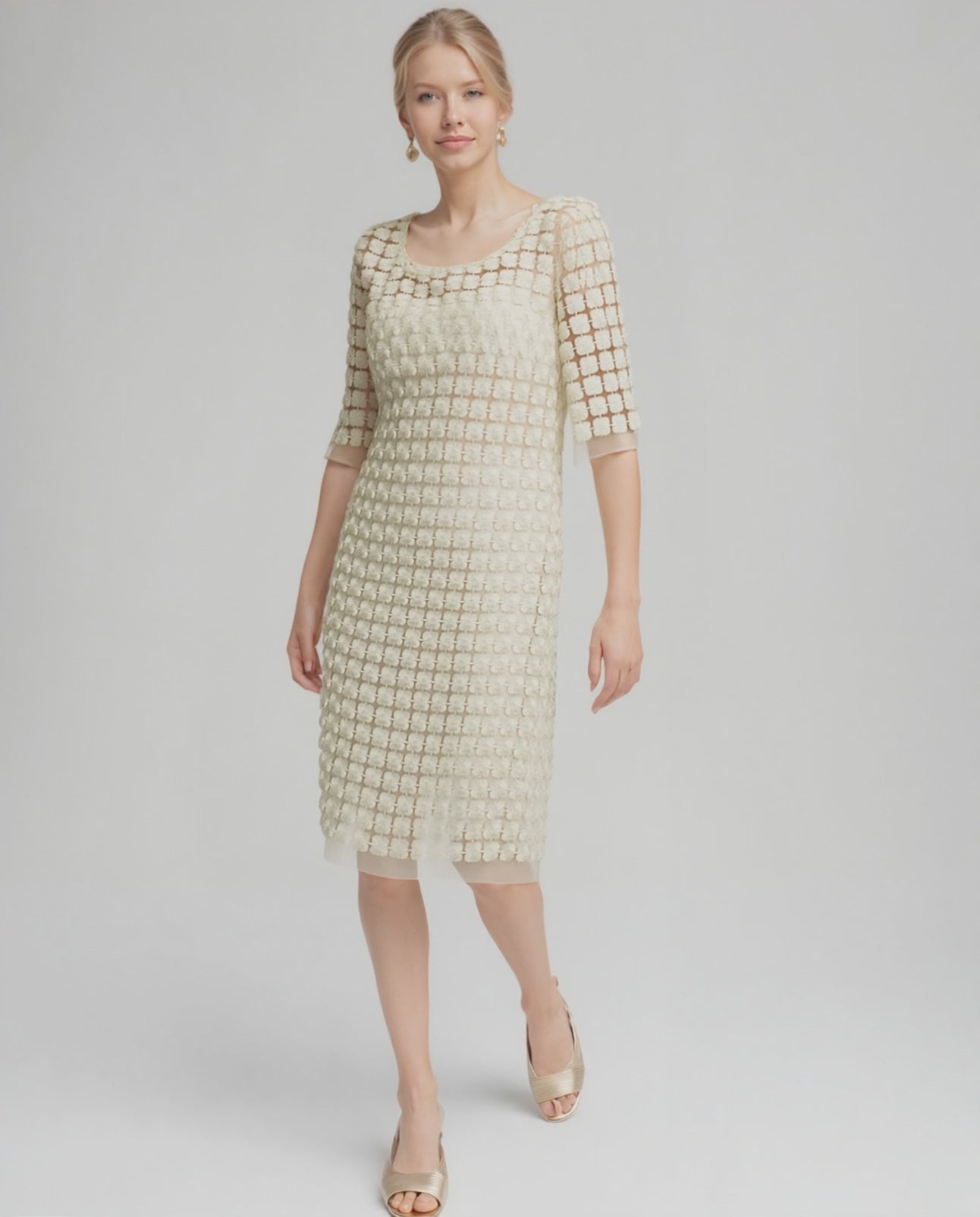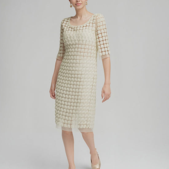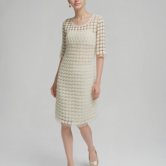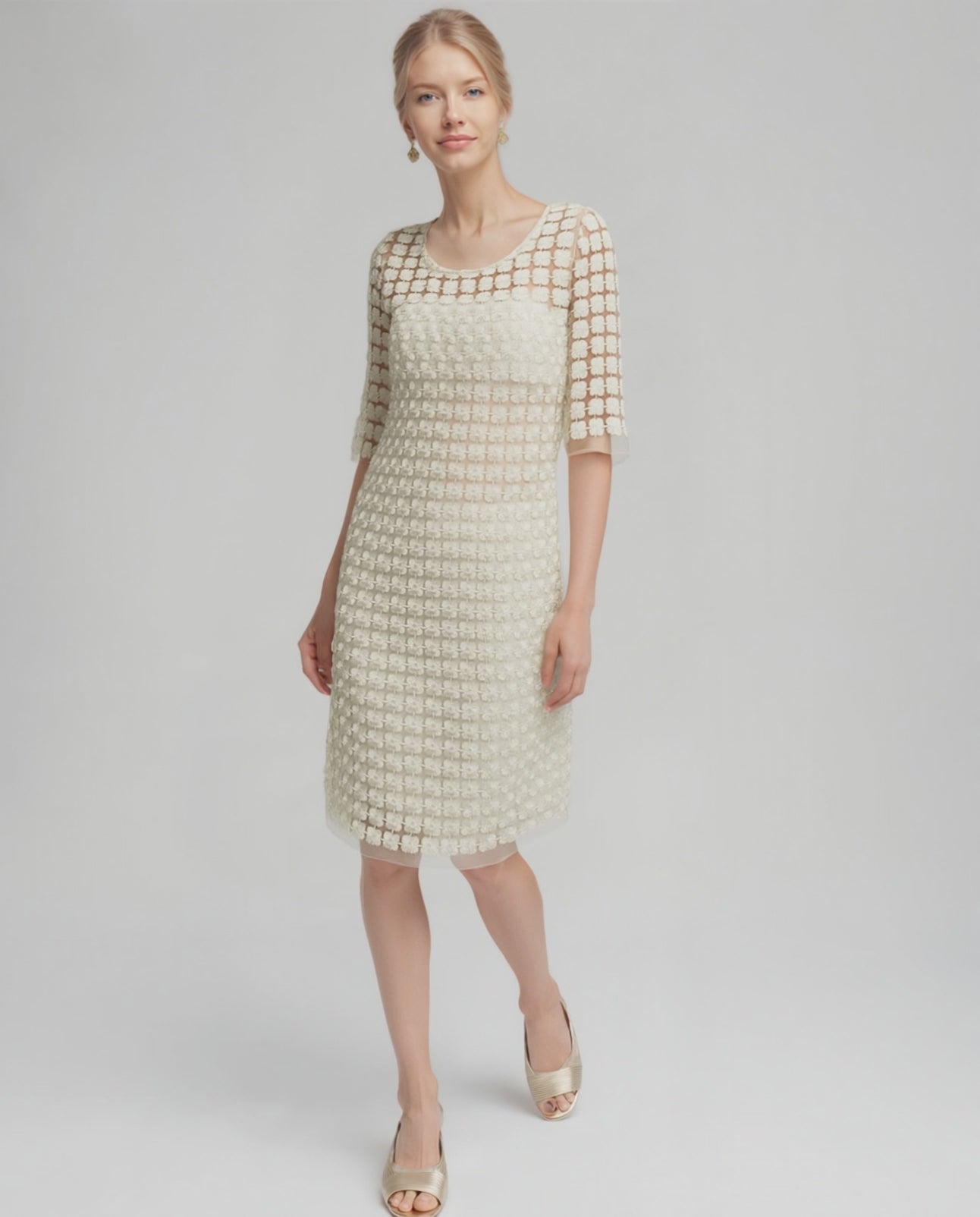 Lace Organza short sleeve Shift Dress with matching cami dress (Ivory)