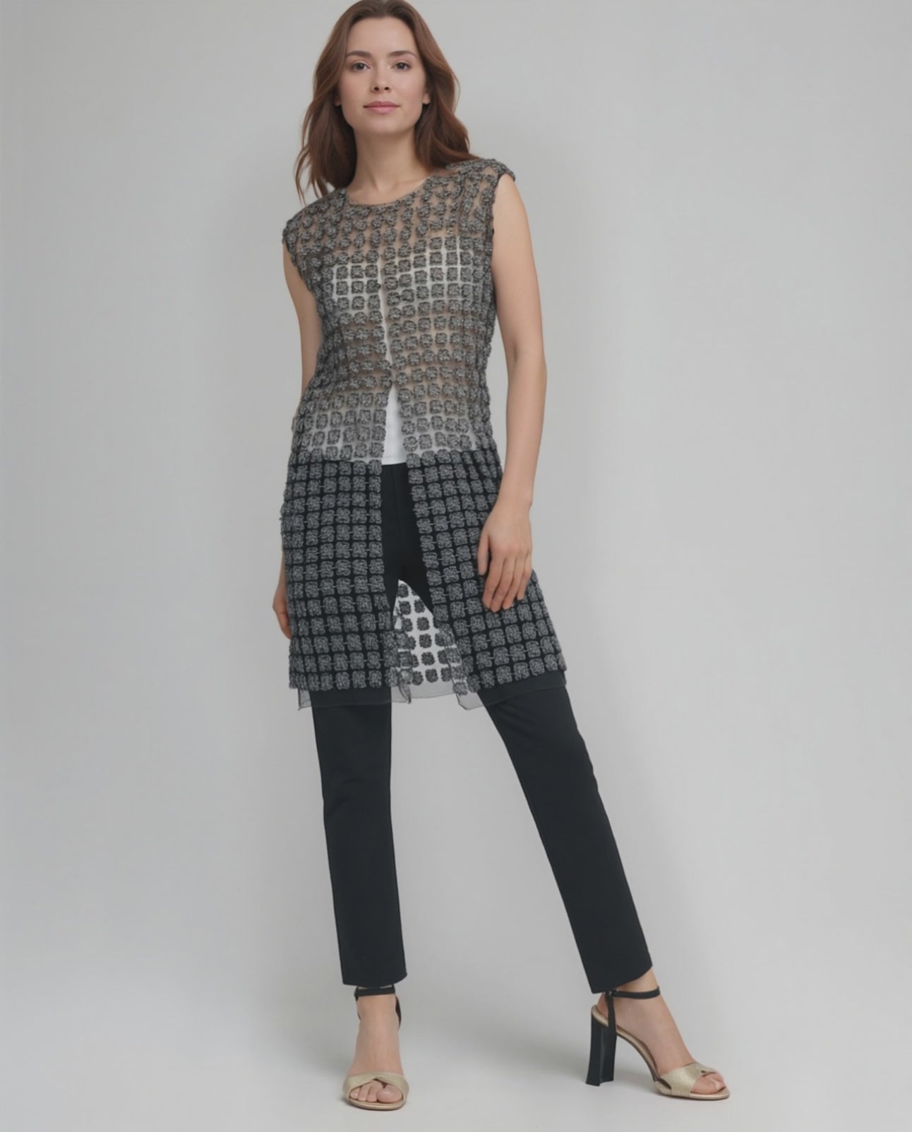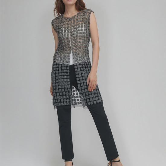 Lace Organza sleeveless Vest (Black)