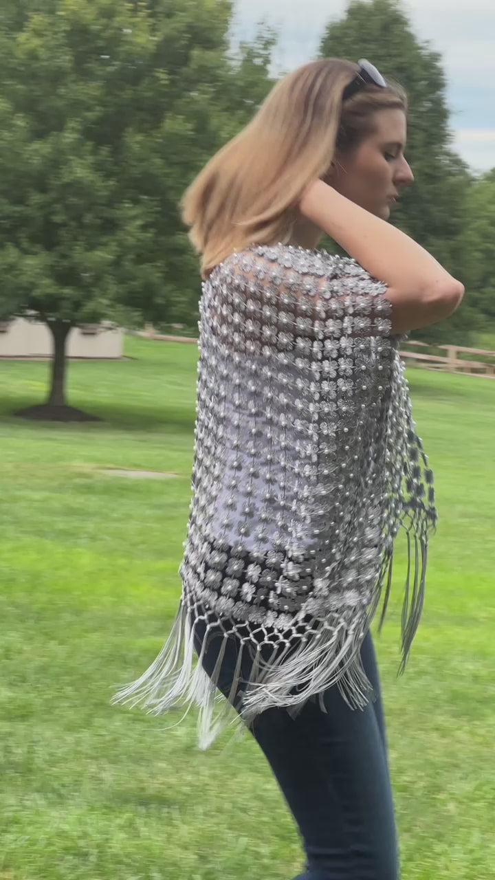 Lace coverup with all over Pearls attached and fringes (Silver)