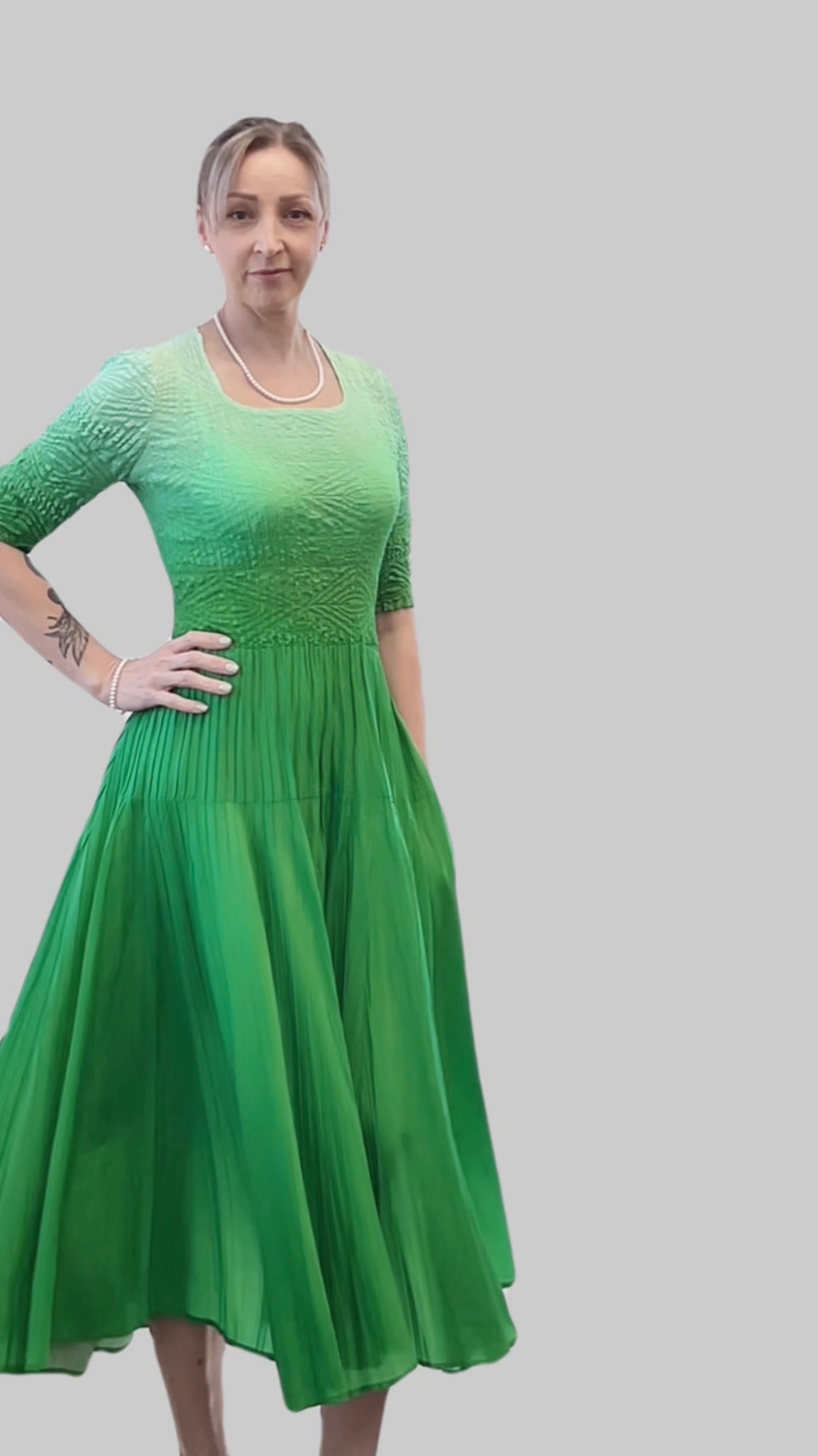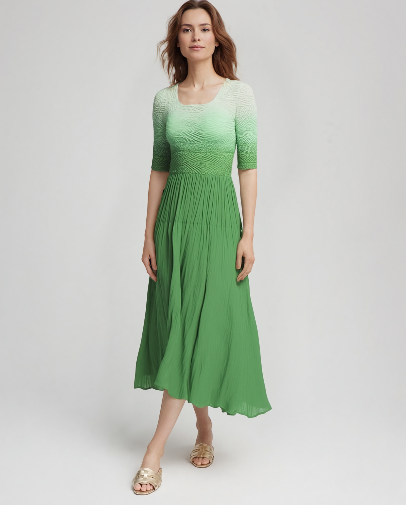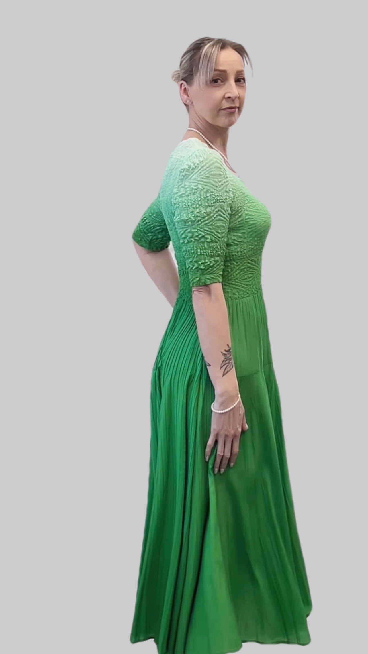 Pleated Dress with 3/4 sleeves ombre effect (Bright Green)