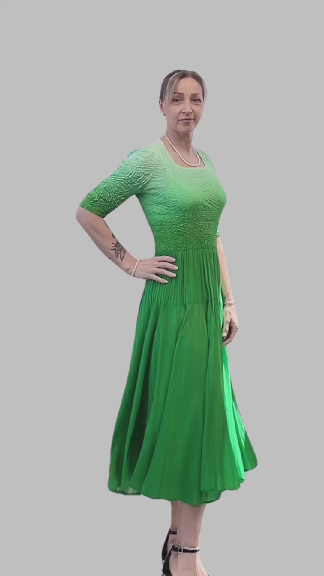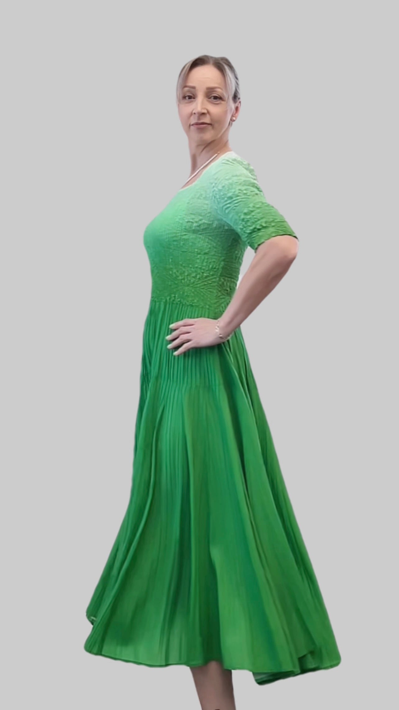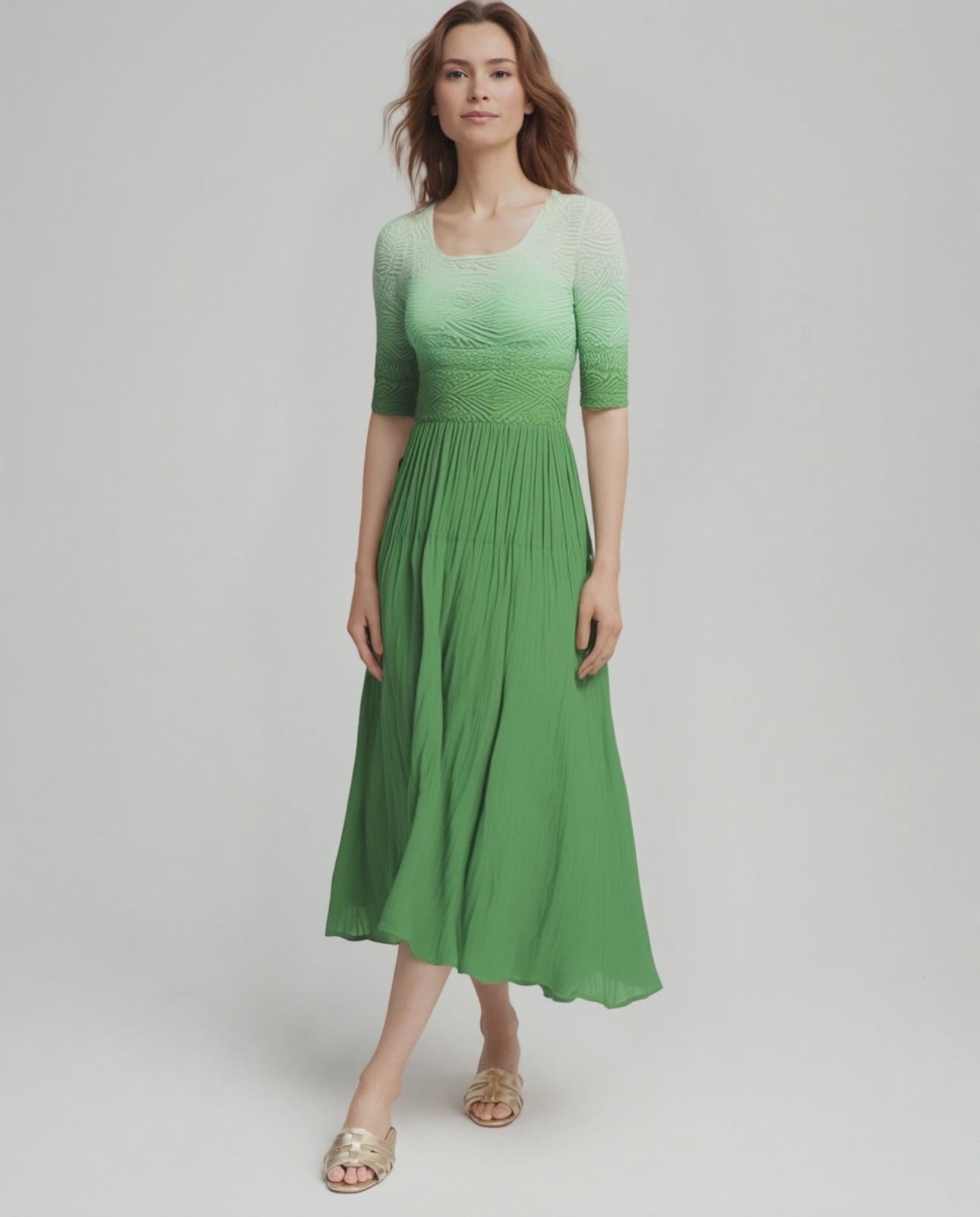 Pleated Dress with 3/4 sleeves ombre effect (Bright Green)