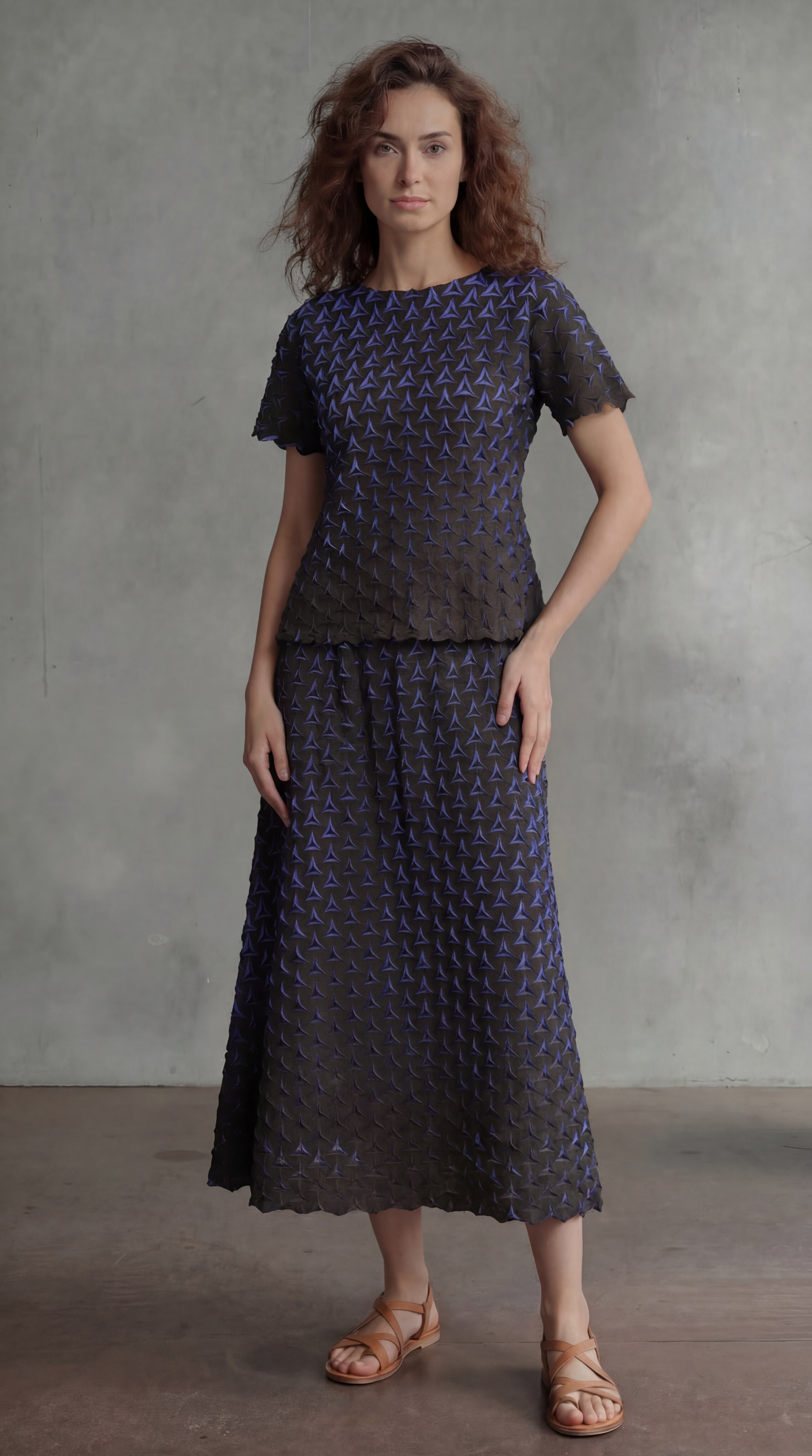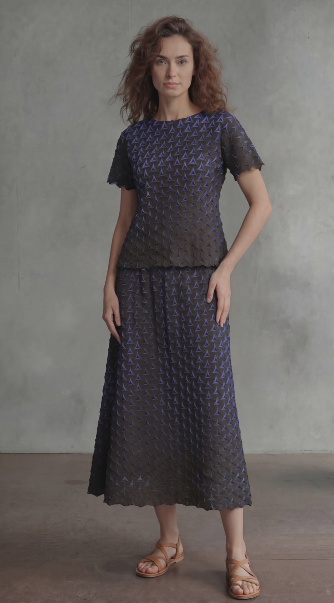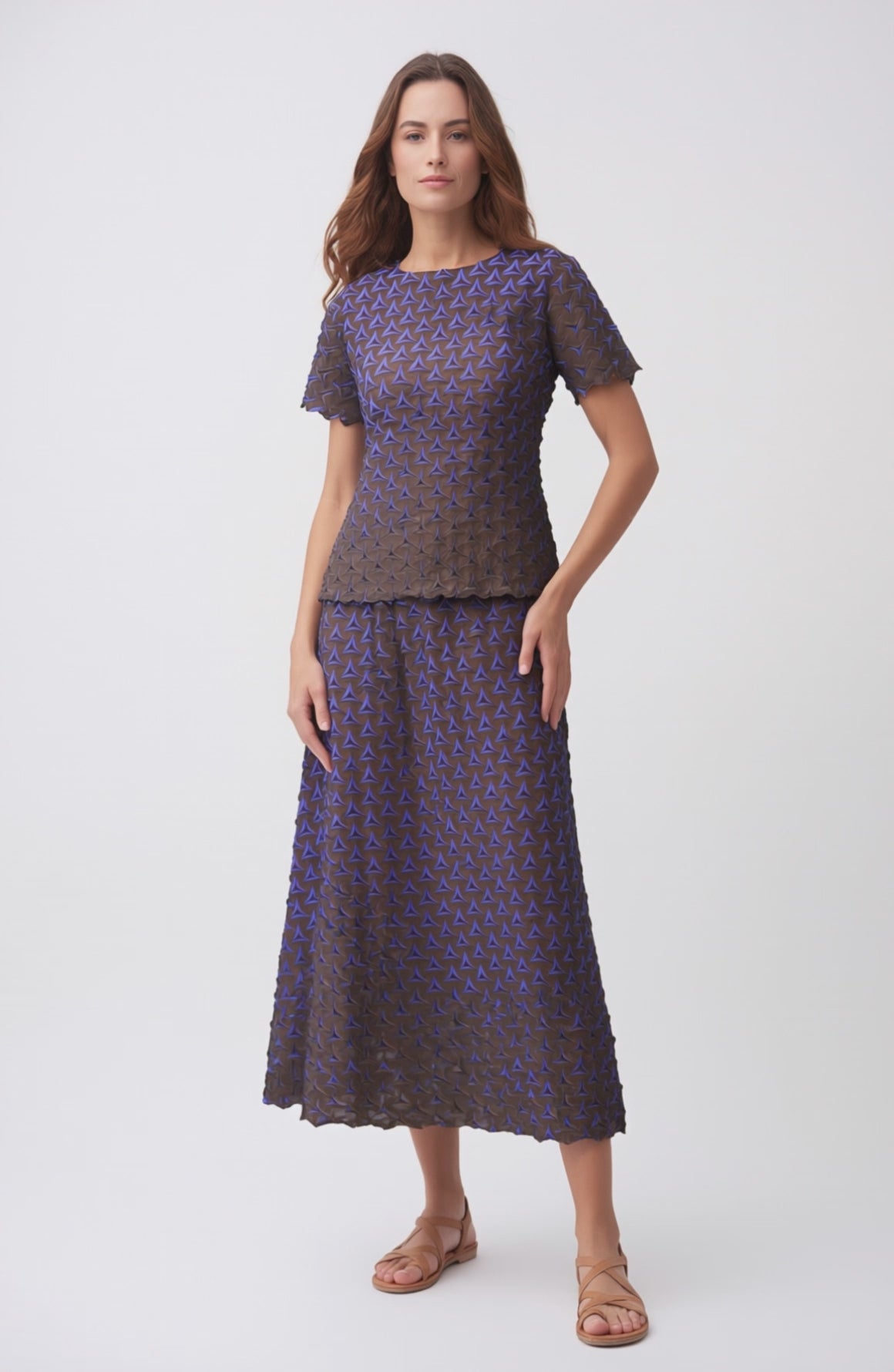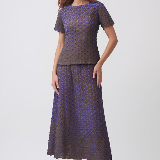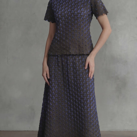 Micro-pleated midi skirt with a Shadow Tri texture.