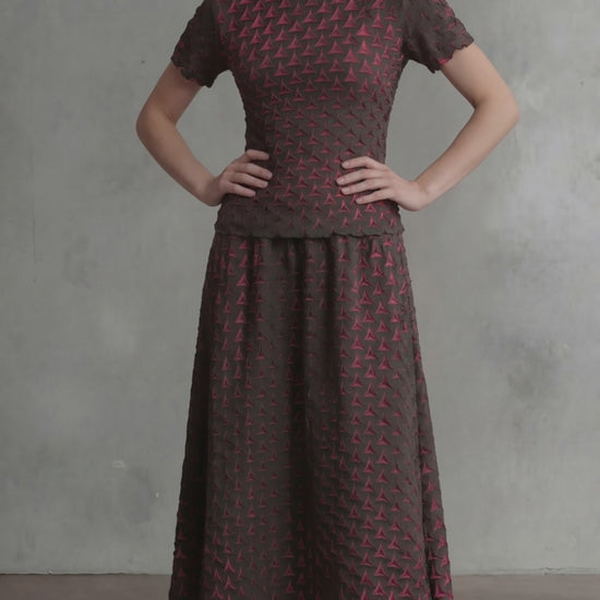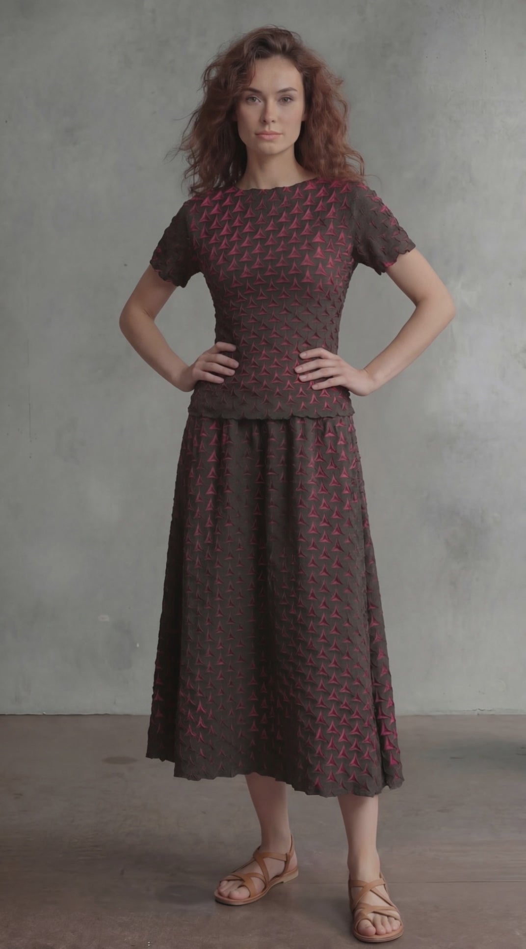 Micro-pleated midi skirt with a Shadow Tri texture.