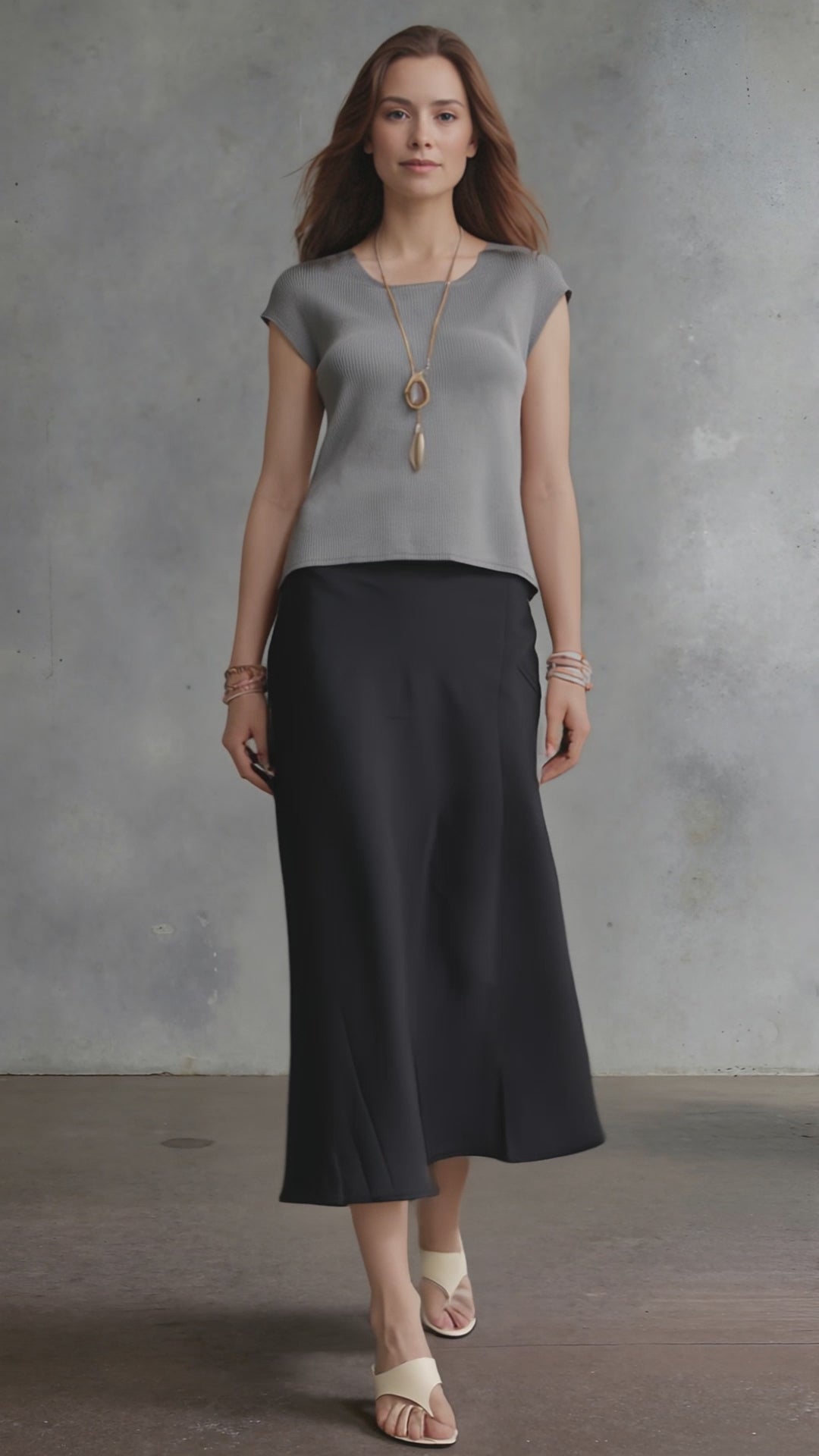 Our Pleating Short Sleeves Top features a softly structured square neckline and delicate micro-rib pleating that flatters the body without clinging. Designed for everyday elegance, this piece transitions seamlessly from polished daytime looks to refined evening styling.