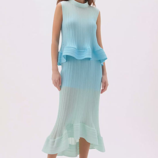Sculpted Pleated Peplum top & Skirt 2 pc set Ombre- Ocean Breeze