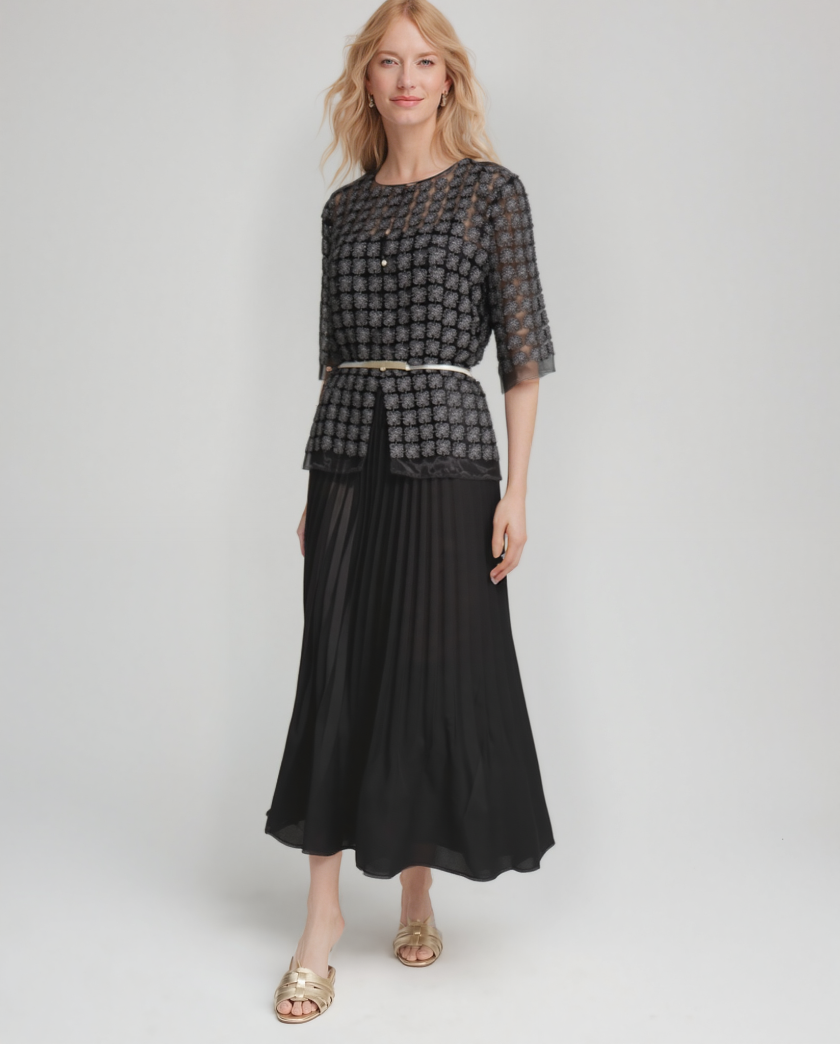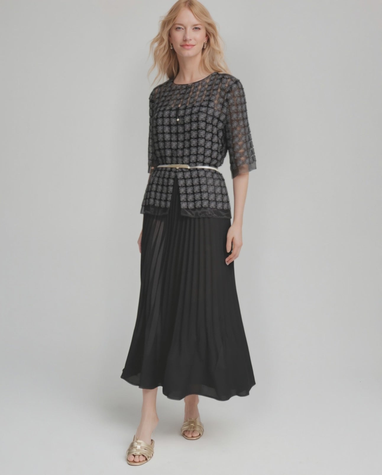 Short Lace Organza shirt with 3/4 sleeves (Black)