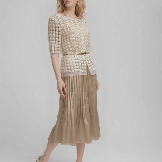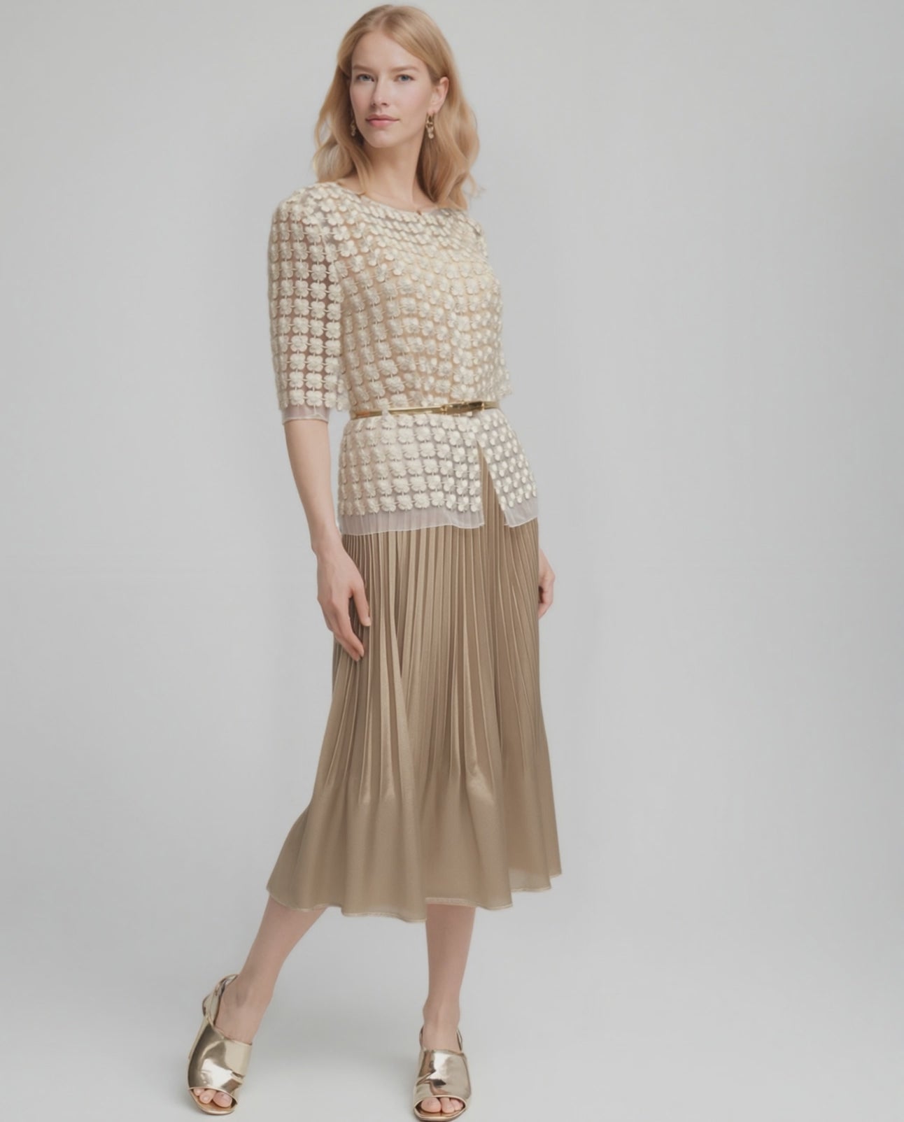 Short Lace Organza shirt with 3/4 sleeves (Ivory)